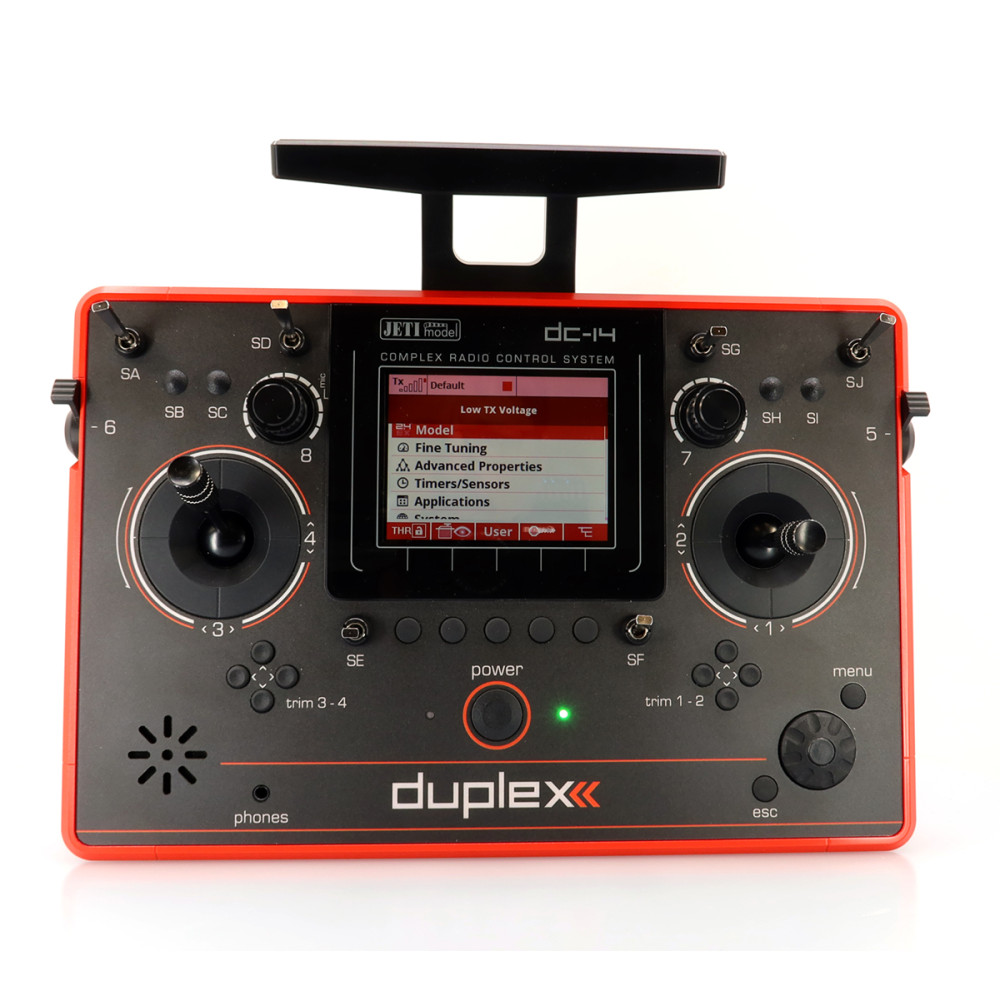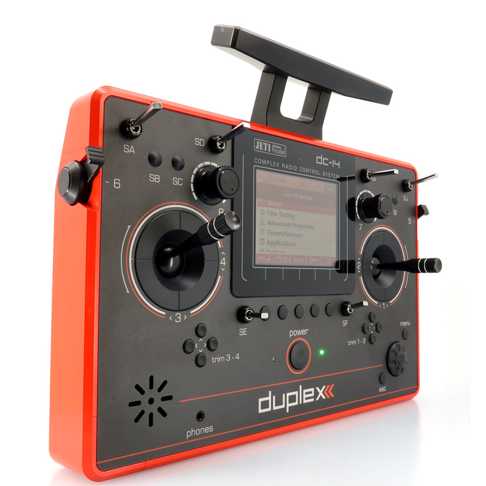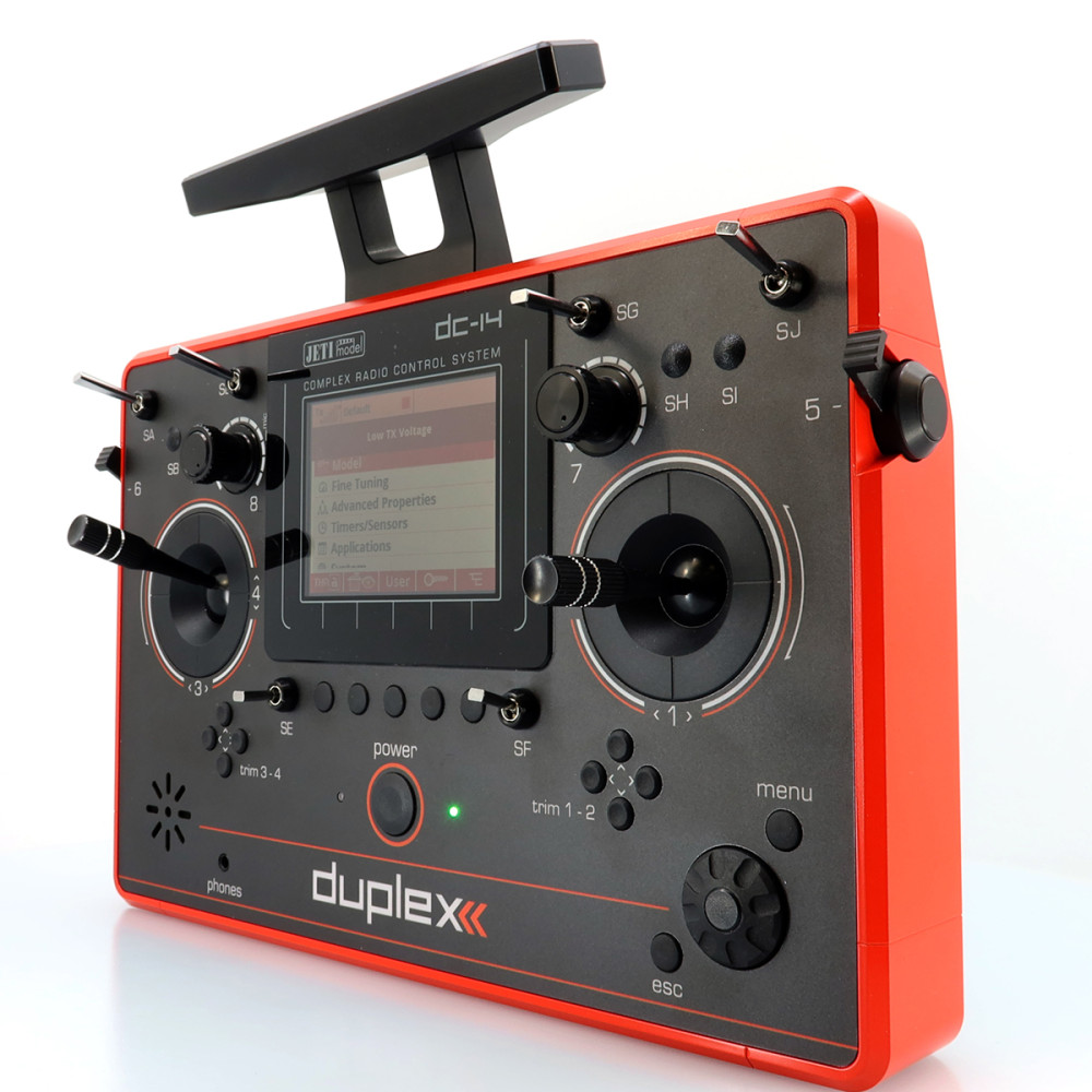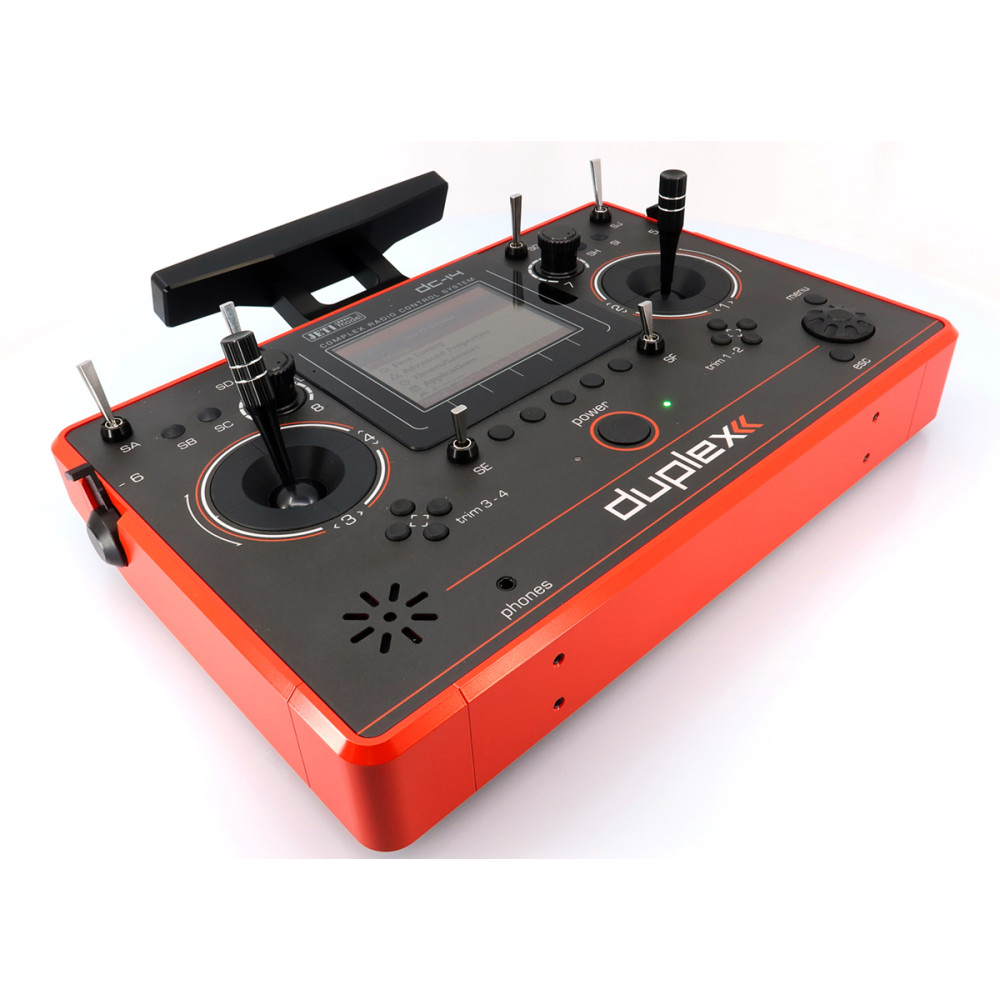 Pultové RC vysielače JETI DC/DS naplno využívajú systém Duplex 2,4 GHz EX a sú postavené na jednoduchom, logickom ovládaní, vysokej životnosti a spoľahlivej mechanike. Kovový obal chráni elektroniku aj povrch, krížové ovládače sú uložené v ložiskách a používajú Hall magnetické senzory pre presný a plynulý chod.