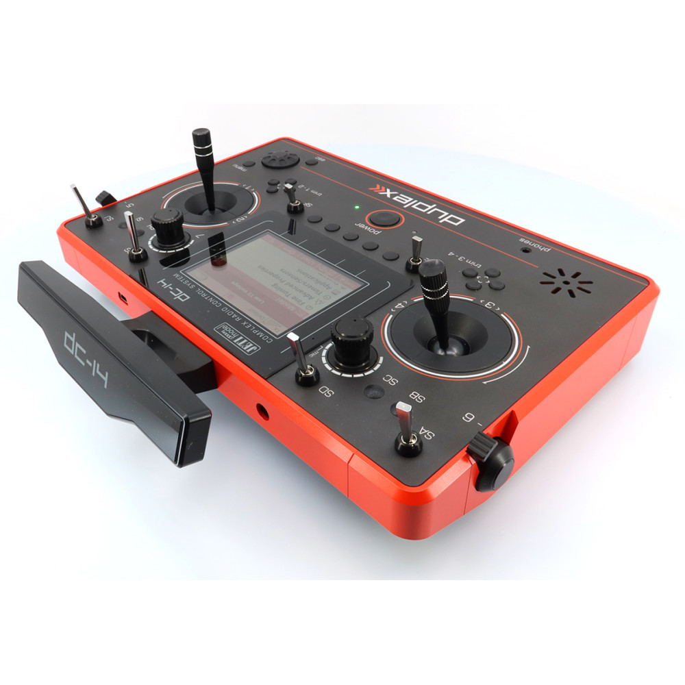 DC-14 II (Rev.2) ponúka prehľadné menu, pohodlnú navigáciu rotačným ovládačom a funkčnými tlačidlami a farebný 3,5" TFT displej (320 × 240 px) s dobrou čitateľnosťou. Podporuje telemetriu Duplex EX, zvukové upozornenia/alarmy, prehrávanie audia, vlastné zvuky a cez USB umožňuje aktualizácie firmvéru aj prácu s dátami (napr. telemetria, zvuky).
