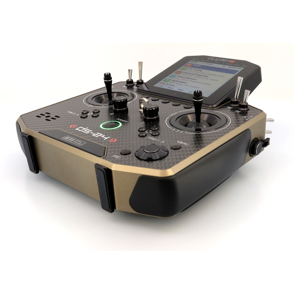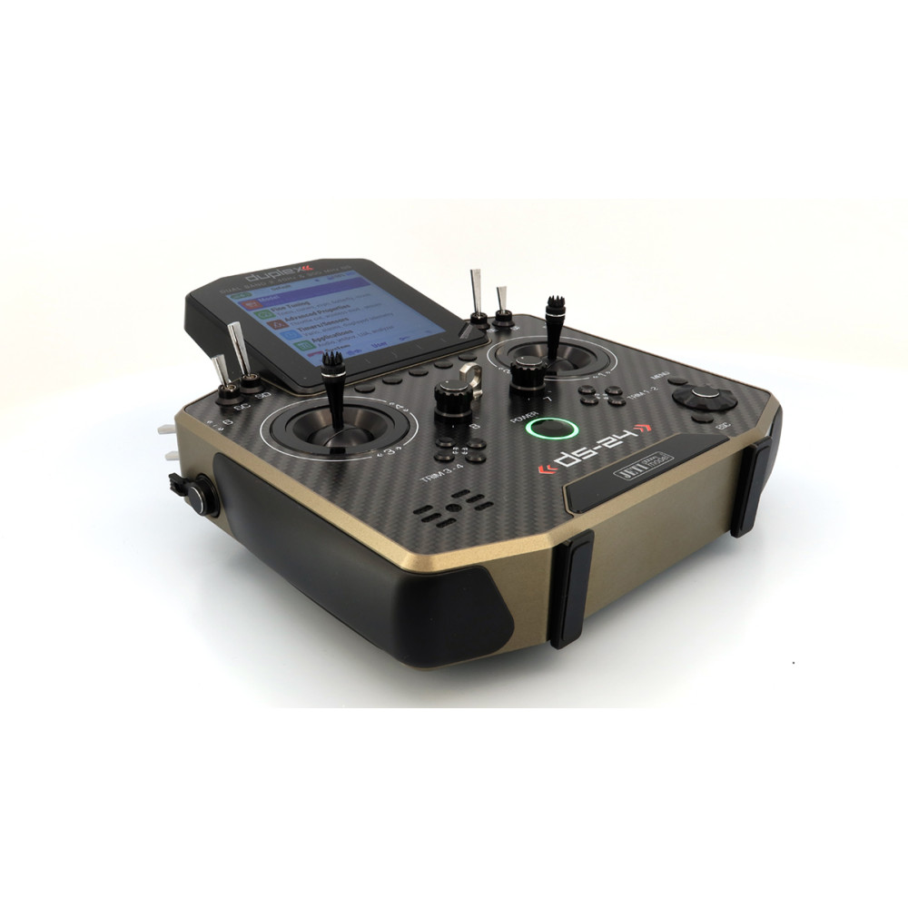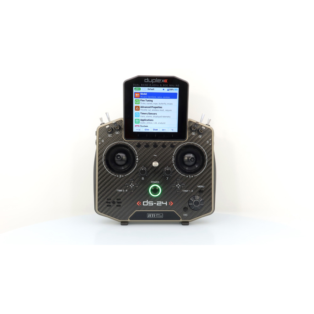 Palcový (DS) vysielač JETI DUPLEX DS-24II druhej generácie prináša nadčasový dizajn s prepracovaným a ľahším rámom, nové grafické rozhranie JUi2, väčší a jasnejší 4" displej a výkonnejší hardvér pre plynulú prácu. Podporuje Bluetooth (vrátane bezdrôtových slúchadiel a online telemetrie cez smartfón), má Wi-Fi modul pre online aktualizácie, a USB-C na nabíjanie aj pripojenie k PC/Mac. Systém DUPLEX 2.4 GHz je plne kompatibilný s Duplex ekosystémom a súčasťou je aj záložný systém 900 MHz NG.