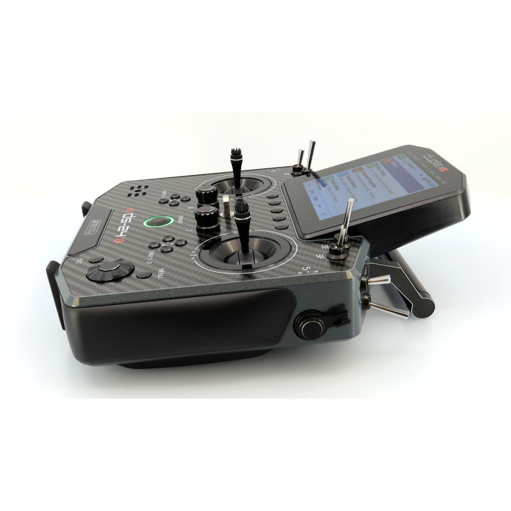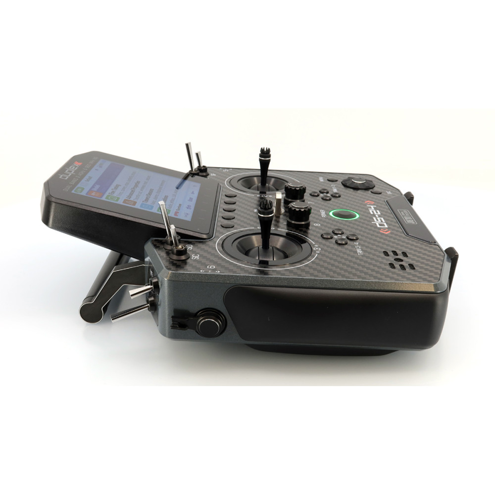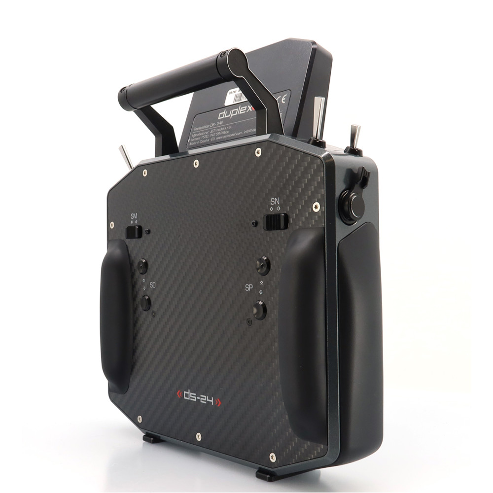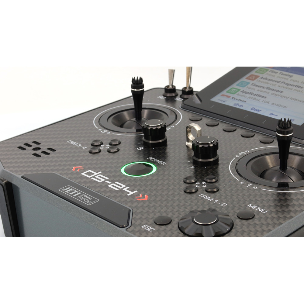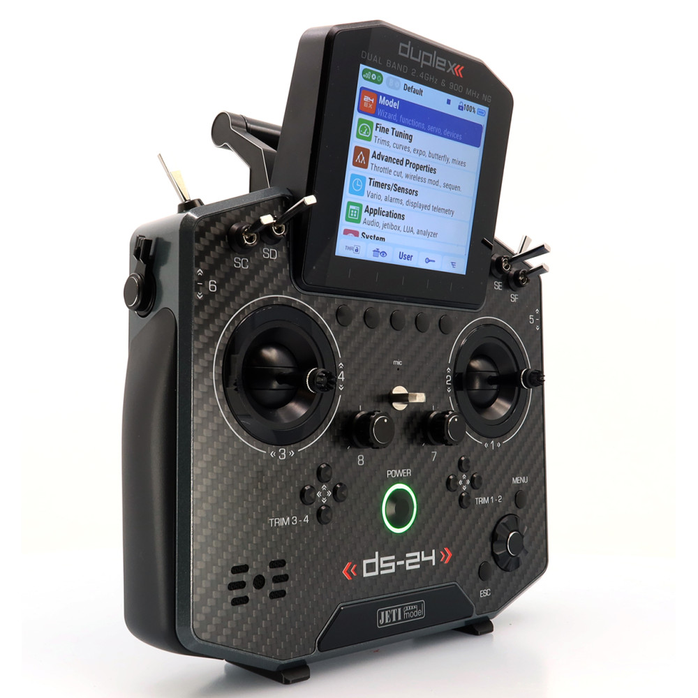 Palcový (DS) vysielač JETI DUPLEX DS-24II druhej generácie prináša nadčasový dizajn s prepracovaným a ľahším rámom, nové grafické rozhranie JUi2, väčší a jasnejší 4" displej a výkonnejší hardvér pre plynulú prácu. Podporuje Bluetooth (vrátane bezdrôtových slúchadiel a online telemetrie cez smartfón), má Wi-Fi modul pre online aktualizácie, a USB-C na nabíjanie aj pripojenie k PC/Mac. Systém DUPLEX 2.4 GHz je plne kompatibilný s Duplex ekosystémom a súčasťou je aj záložný systém 900 MHz NG.