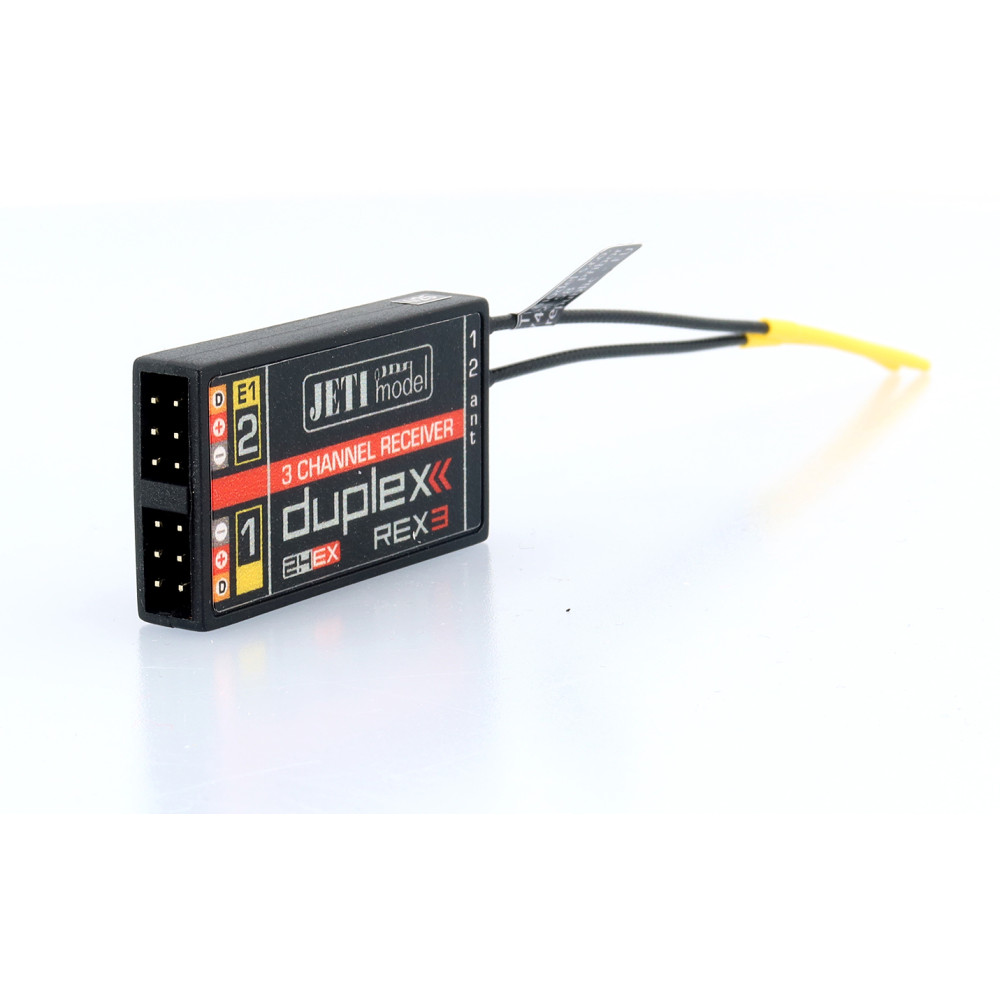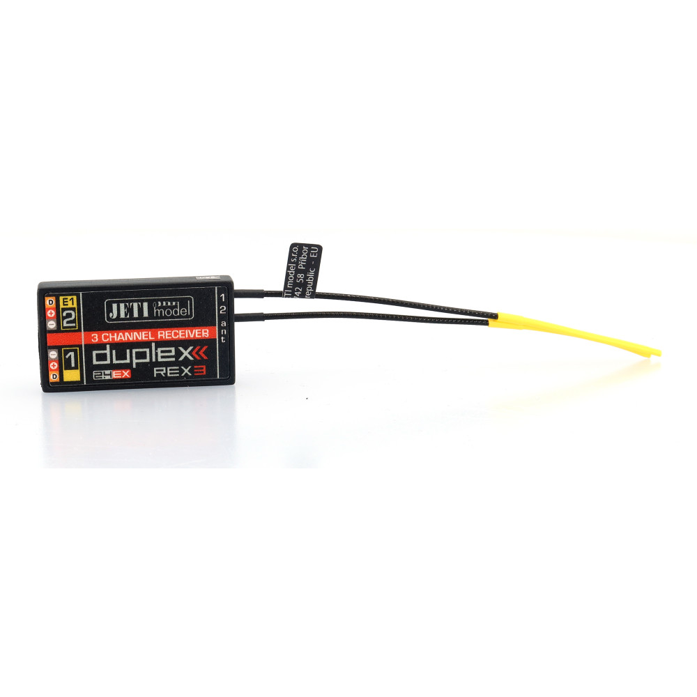 3-kanálový plochý prijímač s dvoma nastaviteľnými výstupmi E1, E2. Nastaviteľné výstupy podporujú servo, snímač JETIBOX/EX, výstup PPM, vstup PPM, výstup EX Bus, výstup UDI a S.BUS.