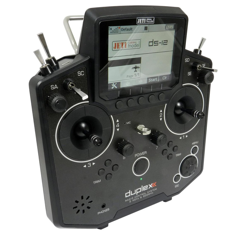 JETI DUPLEX DS-12 EX je kompaktný palcový vysielač pre systém Duplex 2,4 GHz EX s telemetriou a možnosťou rozšírenia funkcií podľa potrieb používateľa (cez konfigurátor). V základnej verzii ponúka prehľadné používateľské rozhranie, prácu s telemetrickými údajmi a podporu zvukových upozornení (podľa aktivovaných modulov).