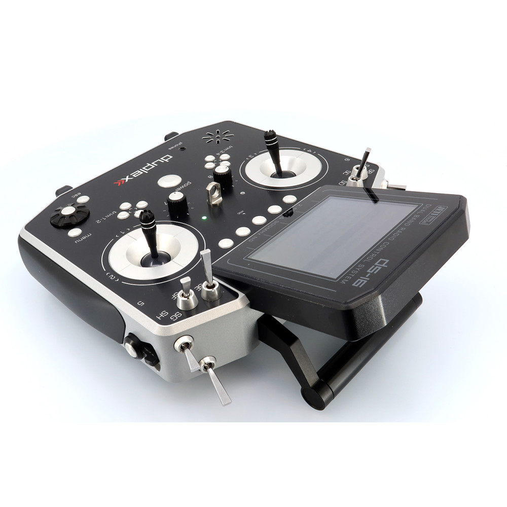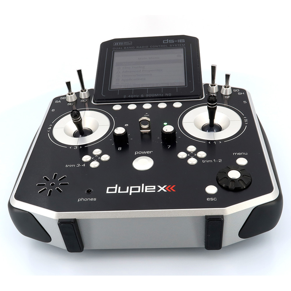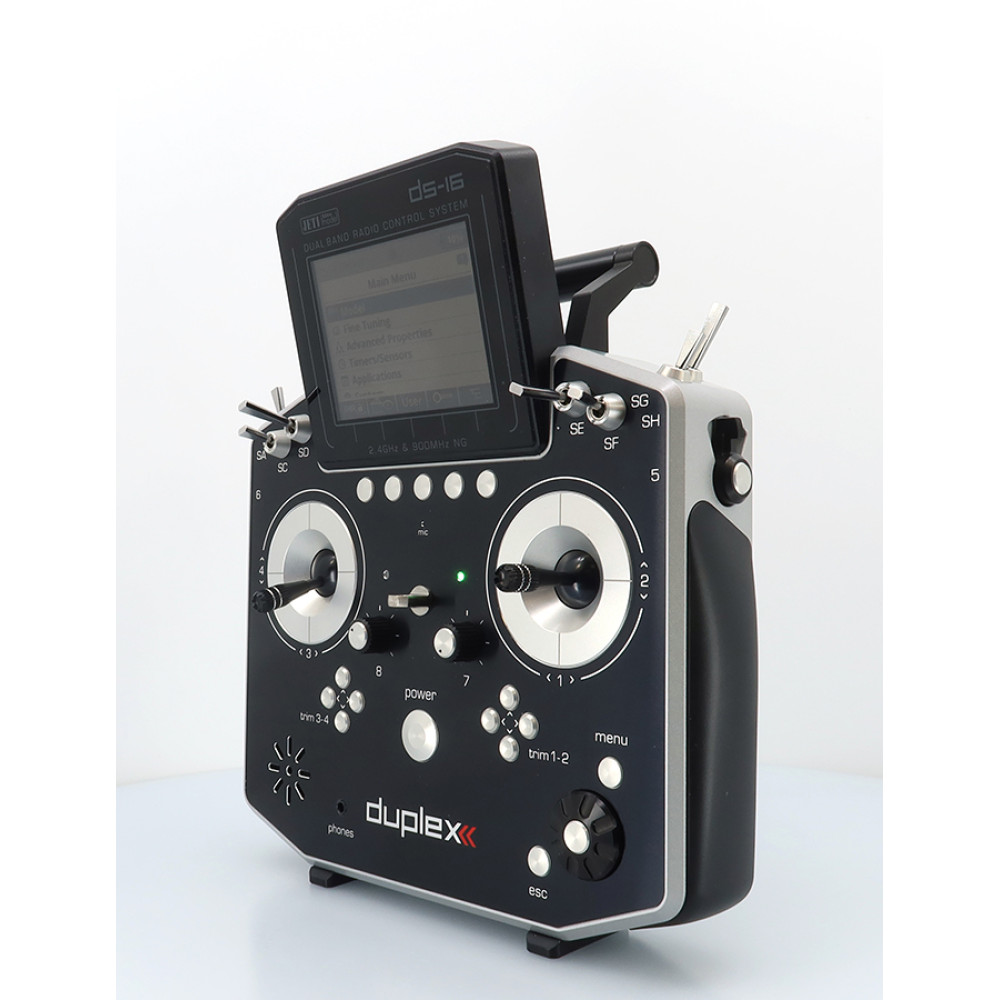 Palcový vysielač JETI DUPLEX DS-16 II je druhá generácia osvedčenej DS platformy pre systém Duplex 2,4 GHz EX s podporou telemetrie. Ponúka prehľadné používateľské rozhranie, možnosť zobrazovať telemetriu aj v grafoch, priraďovať alarmy a prehrávať audiosúbory. Vysielač je postavený na robustnom kovovom tele a presných ovládačoch s Hall snímaním.